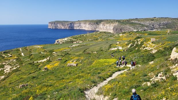 Am fünften Tag erkunden Sie die bezaubernde Insel Gozo. Nach der Überfahrt per Fähre beginnt Ihre Wanderung am Hafen von Mgarr und führt Sie entlang lehmbrauner Hänge, salzigen Pfannen und terrassenartigen Feldern – einige der malerischsten Landschaften Gozos. Sie passieren Mgarr ix-Xini, eine wunderschöne Bucht, und genießen die beeindruckenden Klippen von Sanap sowie den herrlichen Blick auf Malta. Der Wanderweg von Mgarr nach Xlendi gilt als einer der schönsten auf Gozo und bietet eine großartige Gelegenheit, die vielfältige Landschaft der Insel zu entdecken. (Dauer: ca. 3,5 h, Strecke: 12 km, Höhendifferenz: +/- 200 m)